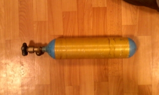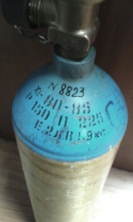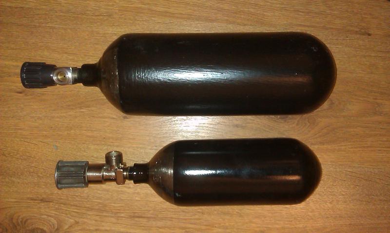 Баллоны были светло синие, их специально перекрасили в черный цвет, это правильно т.к. заправщики могут туда и кислород залить, особенно если оставляешь на заправку, а приезжаешь забирать позже.