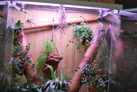 Терр с живыми растениями и дождевальной установкой.
