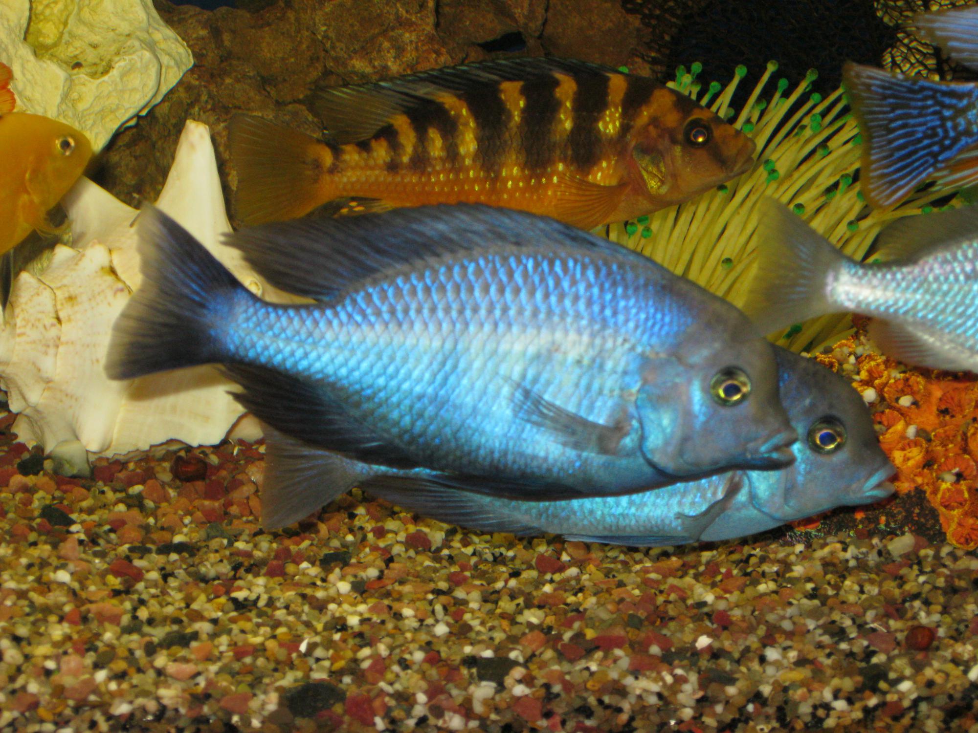 Как Вам такие виды, протомелас, голубой дельфин и простонародный василек? Дельфины у меня не доокрашенные- молодые, разбавить это все аулонокарами Red Dragon, Eureka, Chipoka, Копадихромис Каданго. В стае рыба очень эффектна, более спокойна в сравнении с таньгой, да и условия содержания попроще.