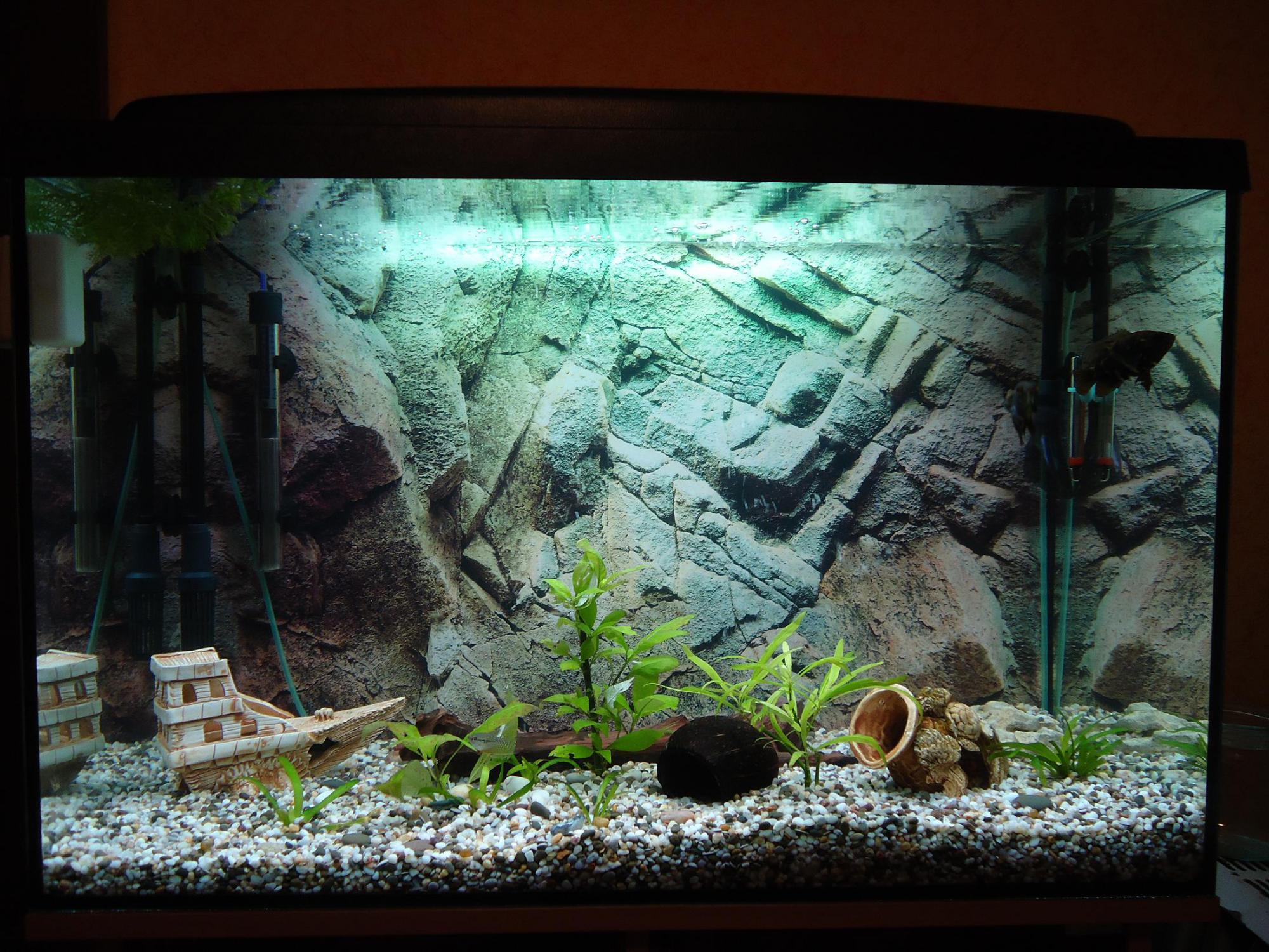 Deniska444, Грунт лучше одноцветный и потемнее (базальт), слоем 5-6 см, керамику убрать, растения - спиральную валеснерию, эхинодорусы Амазонку (1) и карликовый (5-8 ) - (покровке (коврику) понадобится СО2)