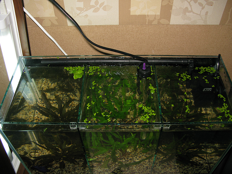 п.с. высота перегородок уменьшена для лучшей циркуляции воды и перемещения бактерий по всей площади дна Перегородки располагаются таким образом, что опускаются в грунт лишь на несколько мм. Т.е. под них необходимо ставить какие-либо подпорки (например - камни) и фиксировать при помощи верхних ограничителей.