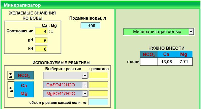 Окремо також можна, виставляеш довільний обєм навіски, вводиш всі дані, вираховуєш кількість рему на данний обєм води, підставляєш цю цифру в обєм навіски та отримуєш розбивку по окремим солям...