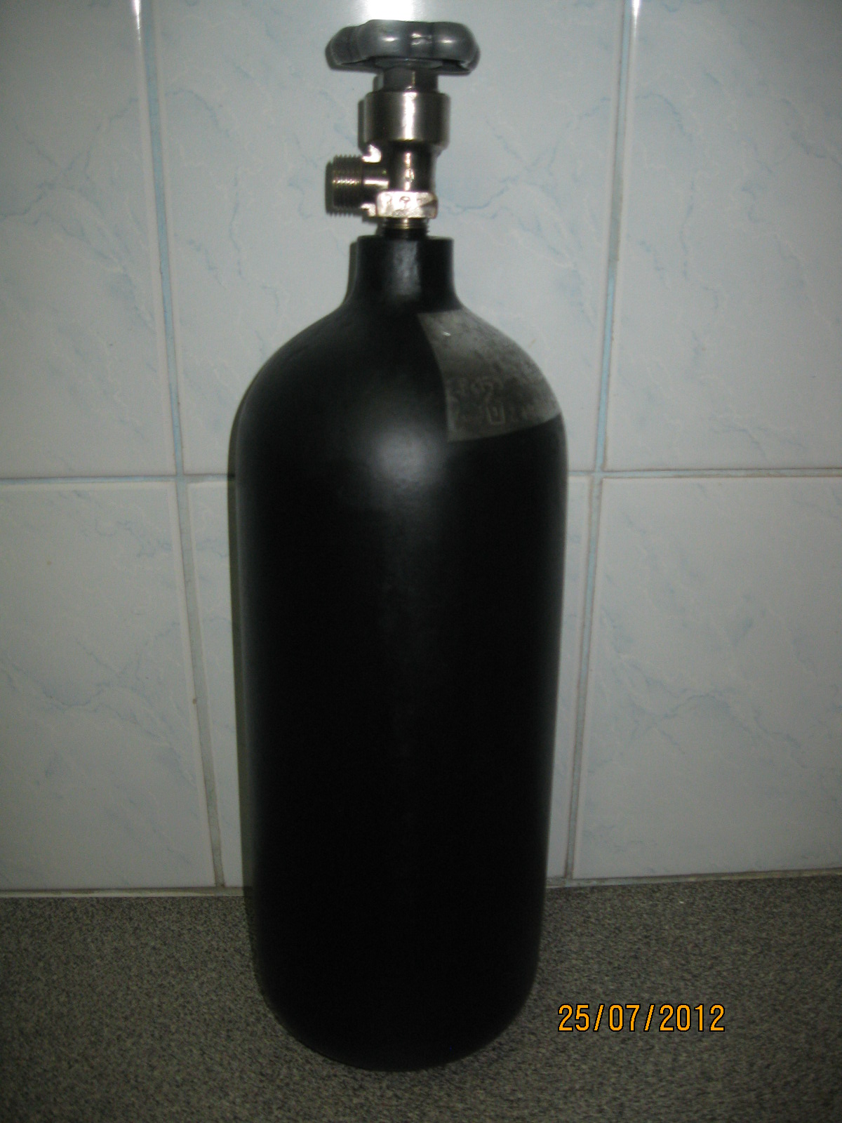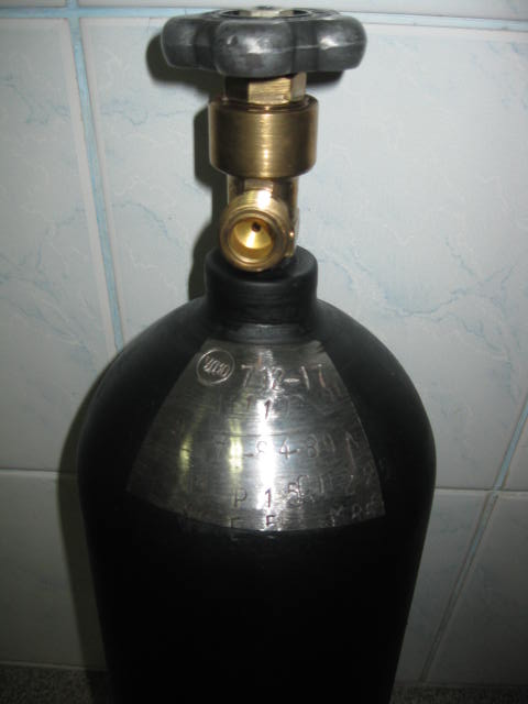 Баллон углекислотный 5л:СССРовский,испытан до 2017г,заправлен СО2,рабочее давление 150атм,высота 53см,ширина 13см,вентиль "КВ-1М" новый,резьба СП21.8,полукруглое дно,350гр.