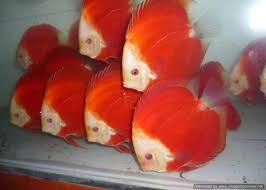 Я не утверждаю на счет именно этой породы, возможно, это закрашенный красный (но рыбка имеет сплошной окрас!!! баз всяких белых голов, он сплошной). Может быть у этого дискуса существует еще несколько коммерческих названий. Я делюсь тем, что, по моему мнению, кажется интересным. Вашу реакцию я принимаю: Вам просто завидно, что таких рыбок у Вас нету, а у меня много :-)