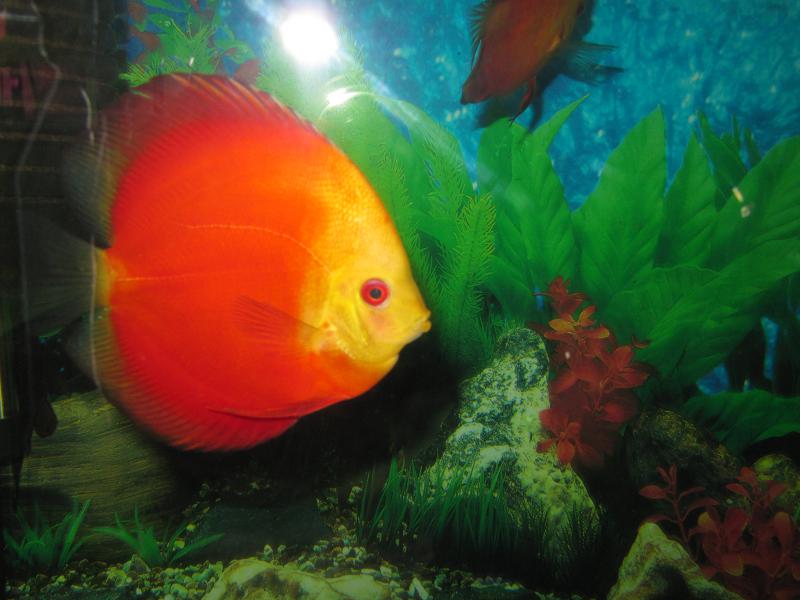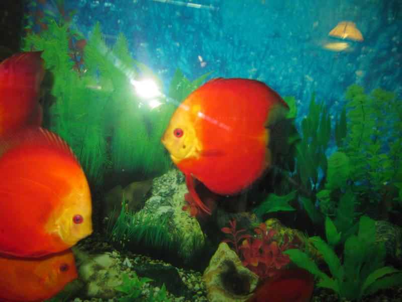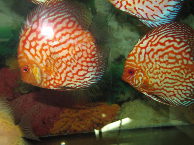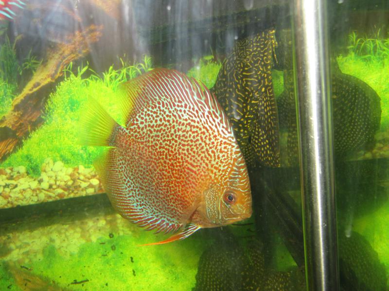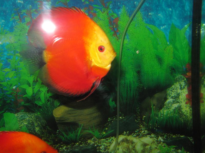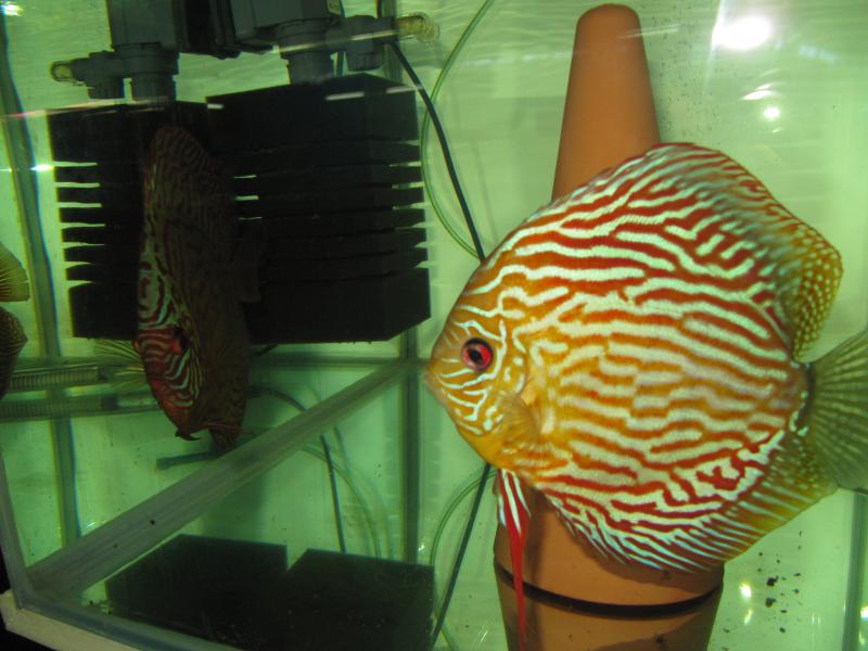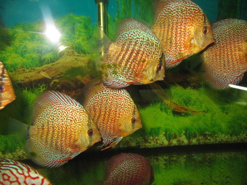 Начались эксперименты. Создал принудительно пару "по расчету", в свою пользу разумеется, прозвал ее "Евросоюз" - самка Rottürkis А.Пивоварски (Германия http://www.diskuszucht-piwowarski.de/), самец Red Turk. Checkerboard - Итальянец (S.G. Discuscoltura S.r.l. www.sgdiscus.com). Рыбины обе крупные, никак не могут определиться кто будет готовить к нересту субстрат, но от любви вроде не отказываются.... Время все решит