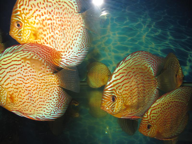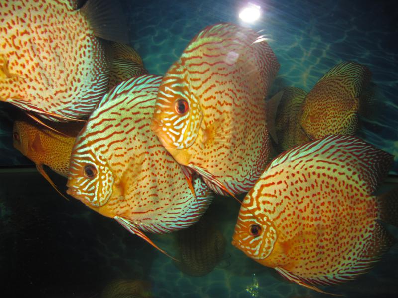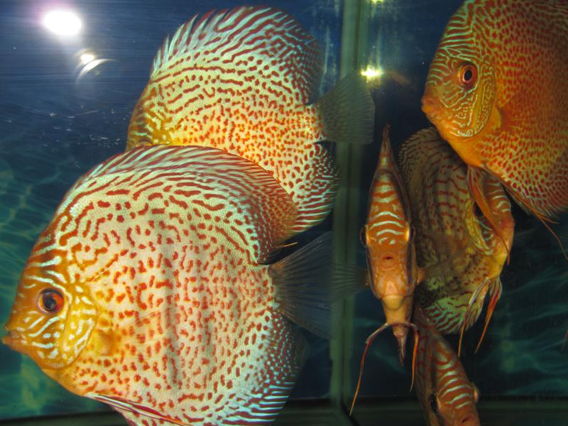 В начале прошлого года поставил в зале аквариум с дисками, что-то типа биотопника. Поскольку у кого то одного купить интересующий меня набор пород не представлялось возможности, пошел на определенный риск и собрал рыбу со всей страны можно сказать.