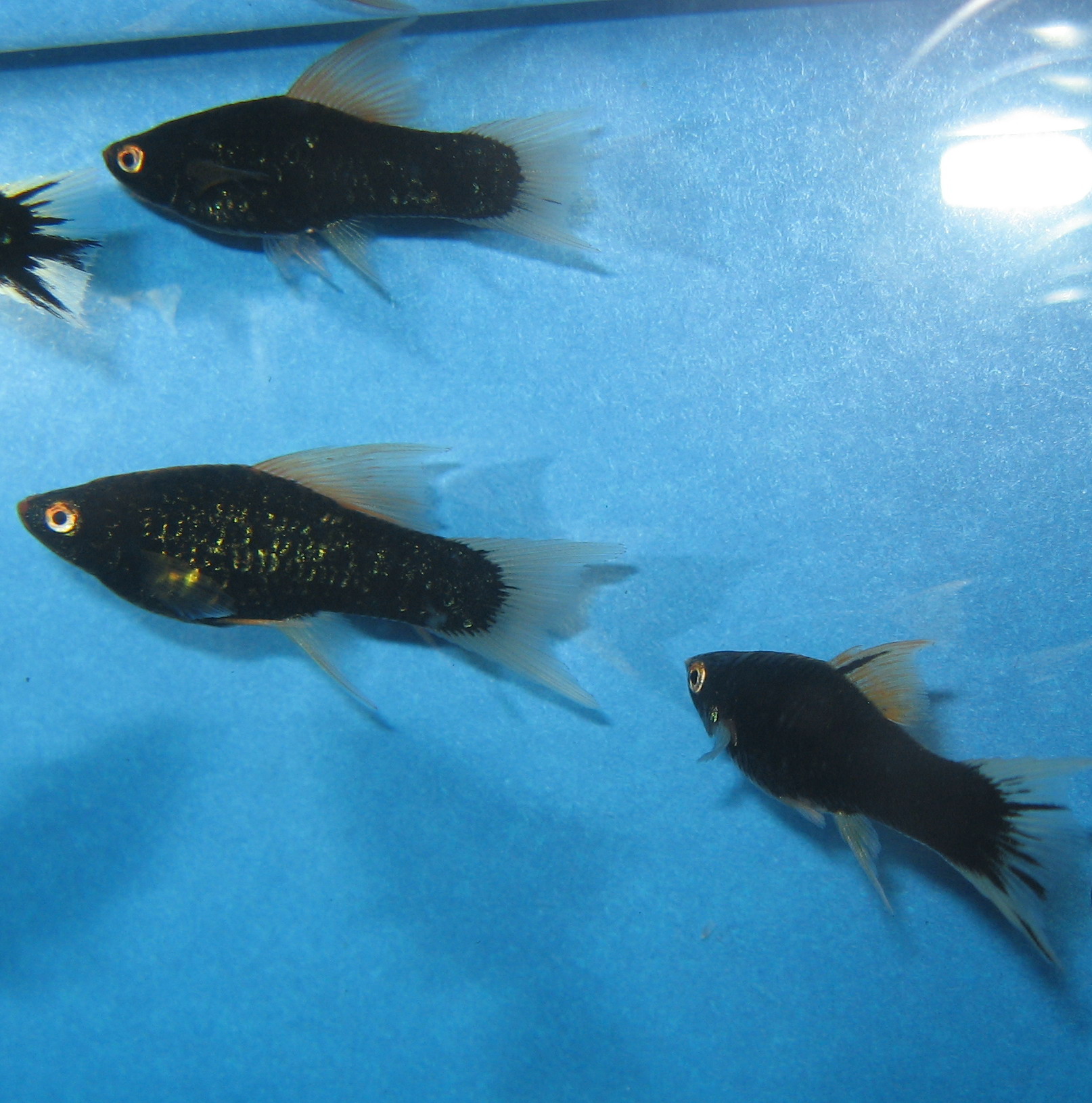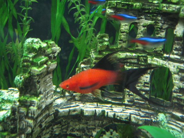 1. Меченосец Черный Вильчатый (тело черное плавники и хвост красные)