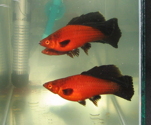 9. Меченосец Бабочка Вильчатая (тело красное, плавники и хвост черные)