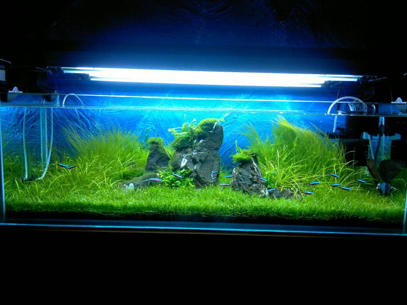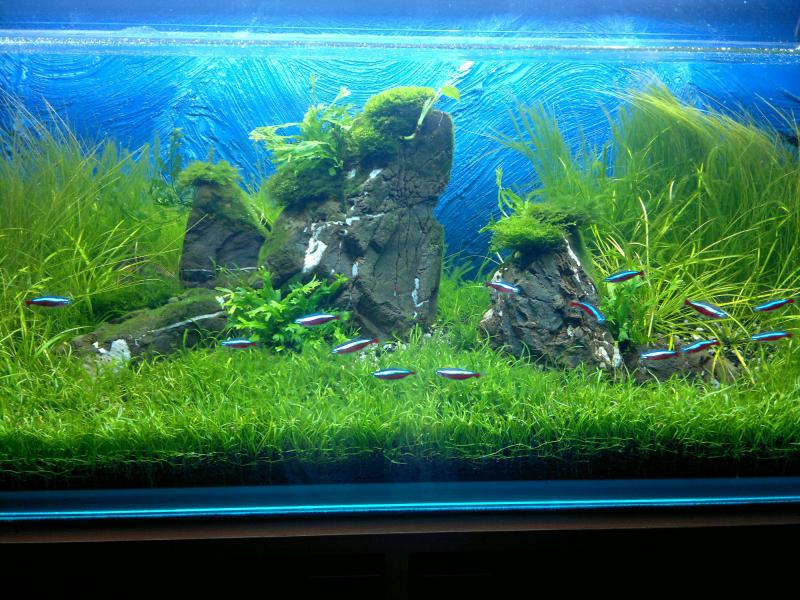 1.140 л., 80х35х50, СО2, удо. Запущен чуть больше месяца. 2. 30л. 30х30х35, СО2, удо. Живут неокардинки. 1 месяц.
