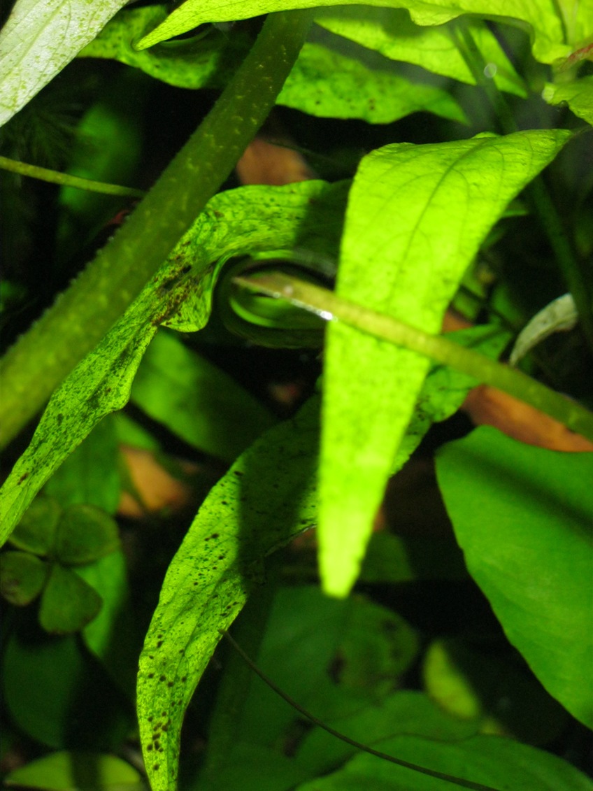 Броблема вот в чем, лимонник и ещё, не знаю точное название растения, но вроде Гигрофила длиннолистная?, листики покрыты мелкими дырочками и немного как бы скручены (но не все), нижние листья отпадают и часть листа как бы растворяется, но не желтеет.