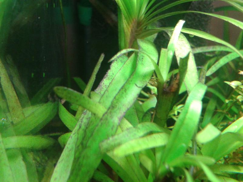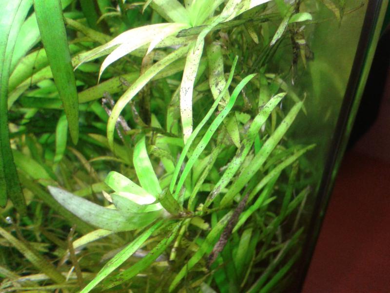 Акваріум запустив десь 5 місяців тому все було ок, проблем абсолютно ніяких не мав, але десь місяць тому (думаю по часу співпало з запуском в акваріум риб і креветок) почались проблеми. Рослини ніби ростуть, але старі лиски покриваються чорним нальотом (ейнхорнія), у гетерантери старі листки нвби розчиняються, У блікси листки пожовтіли і ніби рошаровуються. По тестам NH3/NH4- 0,25; NO3 - 30( хоча інколи і 50 буває) NO2 - 0,1 інших тестів не маю. Виклав декілька фото, надіюсь вийшло, бо 1 раз  . Що порадите?