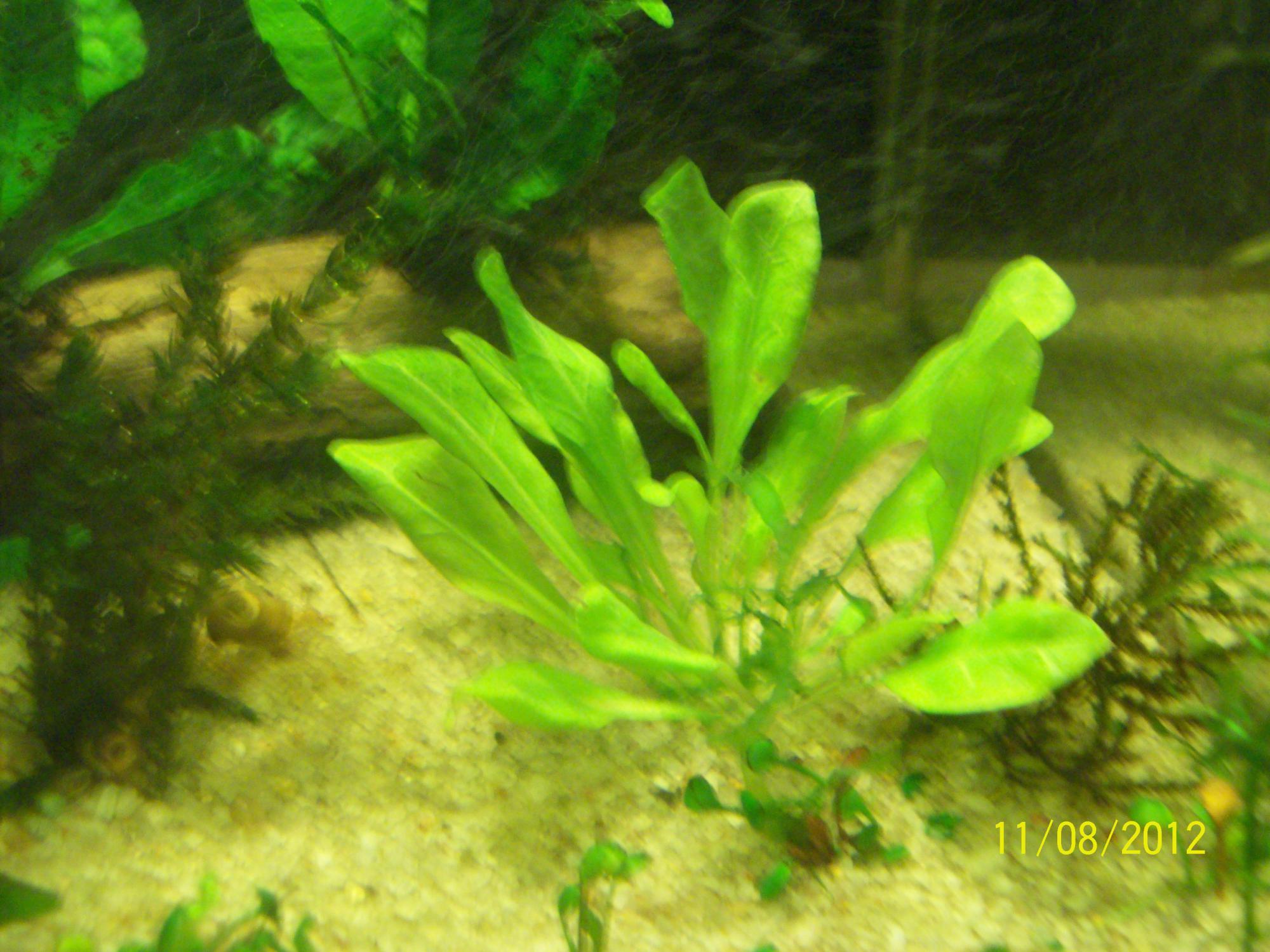 Cryptocoryne lucens на фото точно нет. Увы, на моем сайте сейчас фото не открыавются. У нее жесткие зеленые, ланцетовидные, заостренные листья.