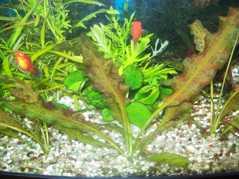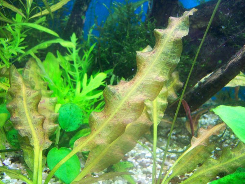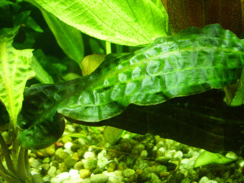 Странно, у меня только родственная криптокарина с самого начала и расплодилась, живёт во всех аквах и во всех по разному выглядит. А лист снизу какого цвета?