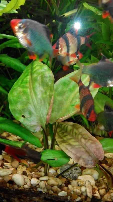 Эхинодорус крапчатый, асперсус - судя по молодому крапчатому листочку, на старых "крапчатость" выцвела из-за "притенения".