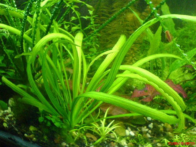Первый брался около 3х лет назад как эхинодорус с названием на д..., но в инете не нашел. Больше двух лет провел на переднем плане среди четырехреберных эхов и почти не отличался от них (чуть более шире листовая пластина и высота до 10 см. на кусте 5 листовых пластин). Где-то около 4х месяцев назад пересадил в другую акву с LED освещением и получил такой результат. Высота порядка 30 см и ширина листовой пластины до 1,5 см. корень эха ползучий.