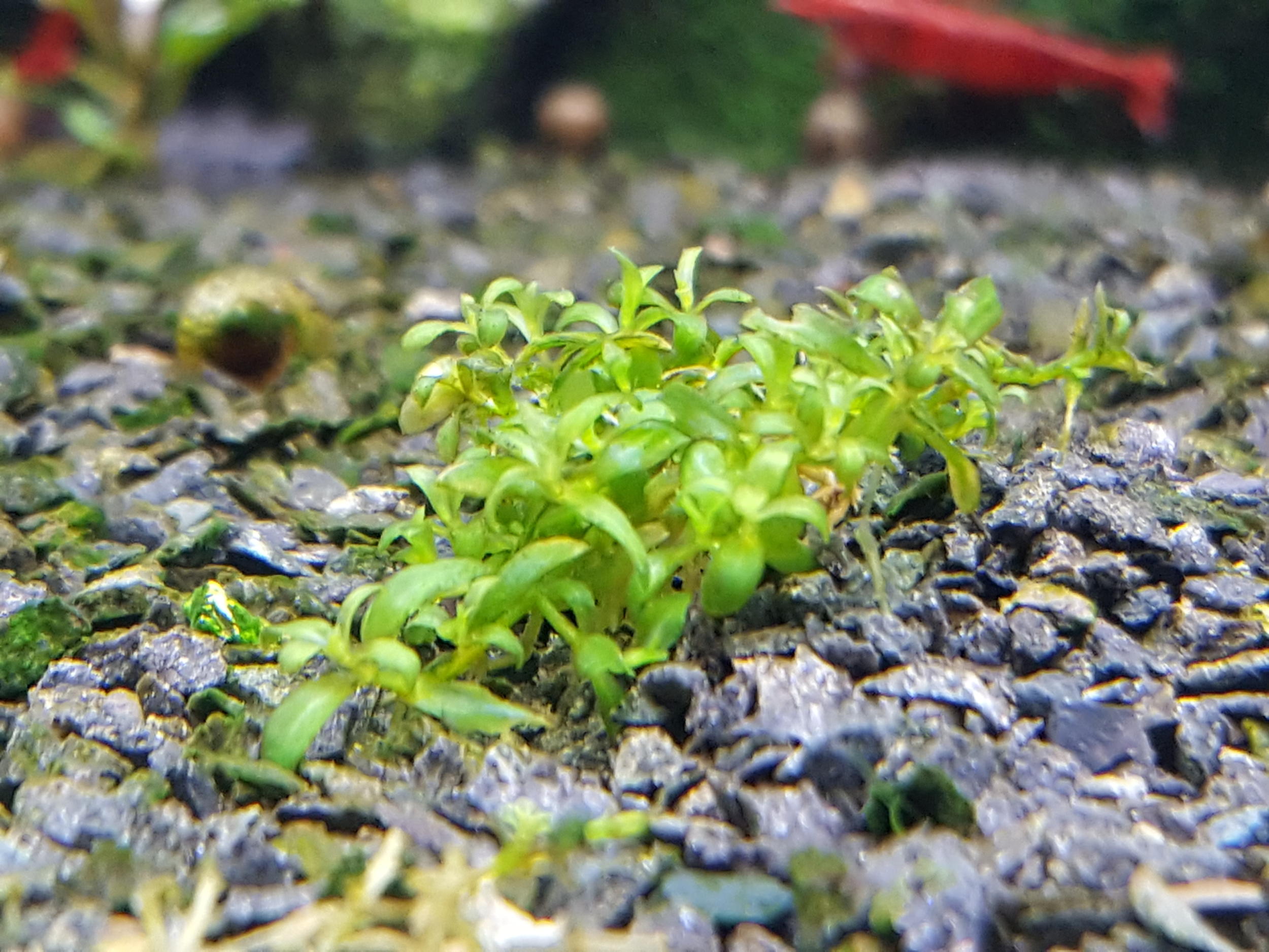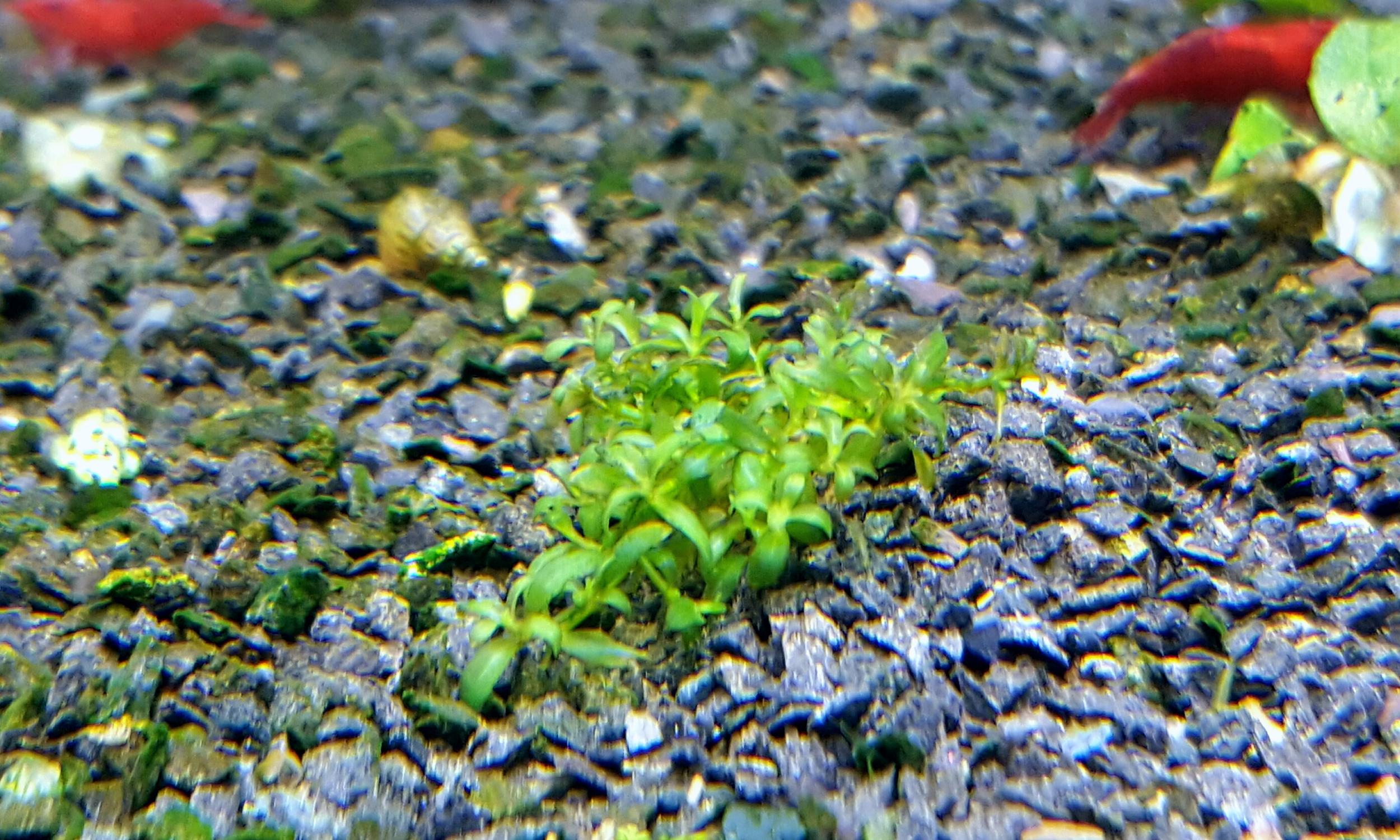 Мне думается растение сухопутное но по случаю проросло в акве . Всё бутылочно-зелёное, слегка на просвет полупрозрачное. Закрепилось в грунте хорошо, корешки зелёные в тон стеблям. Что бы оно могло быть ? Уже скоро 2 месяца как растёт и вроде не жалуется. Может новая покровка какая получится.