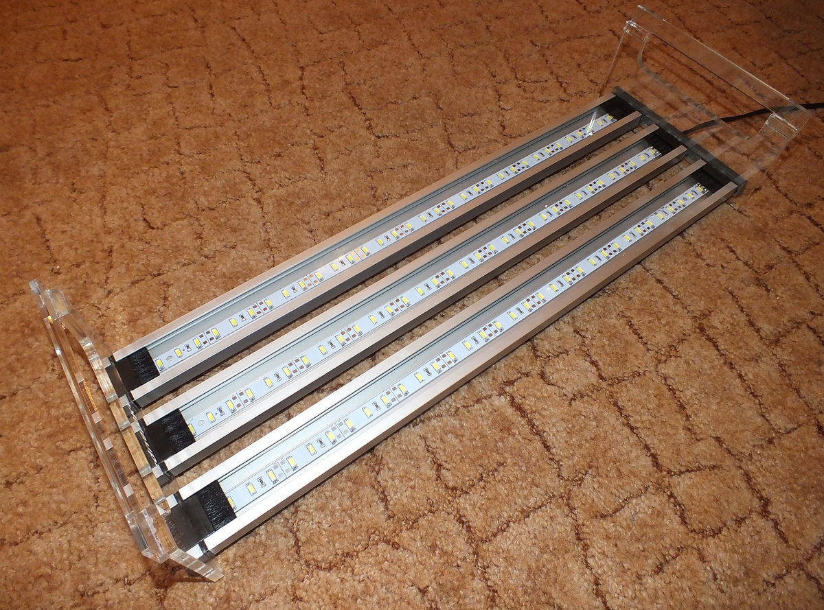 Представляю новый светильник,новый дизайн,с диодами SMD 5730,на защищенном профиле,с акриловыми опорами,под определенный размер аквариума.