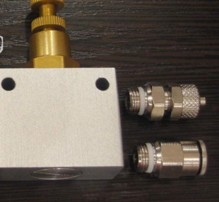Grot, разветвитель соединяется с электромагнитным клапаном фитингом. Нужно только знать диаметр резьбы электромагнитного клапана, тогда можно без проблем подобрать фитинг.