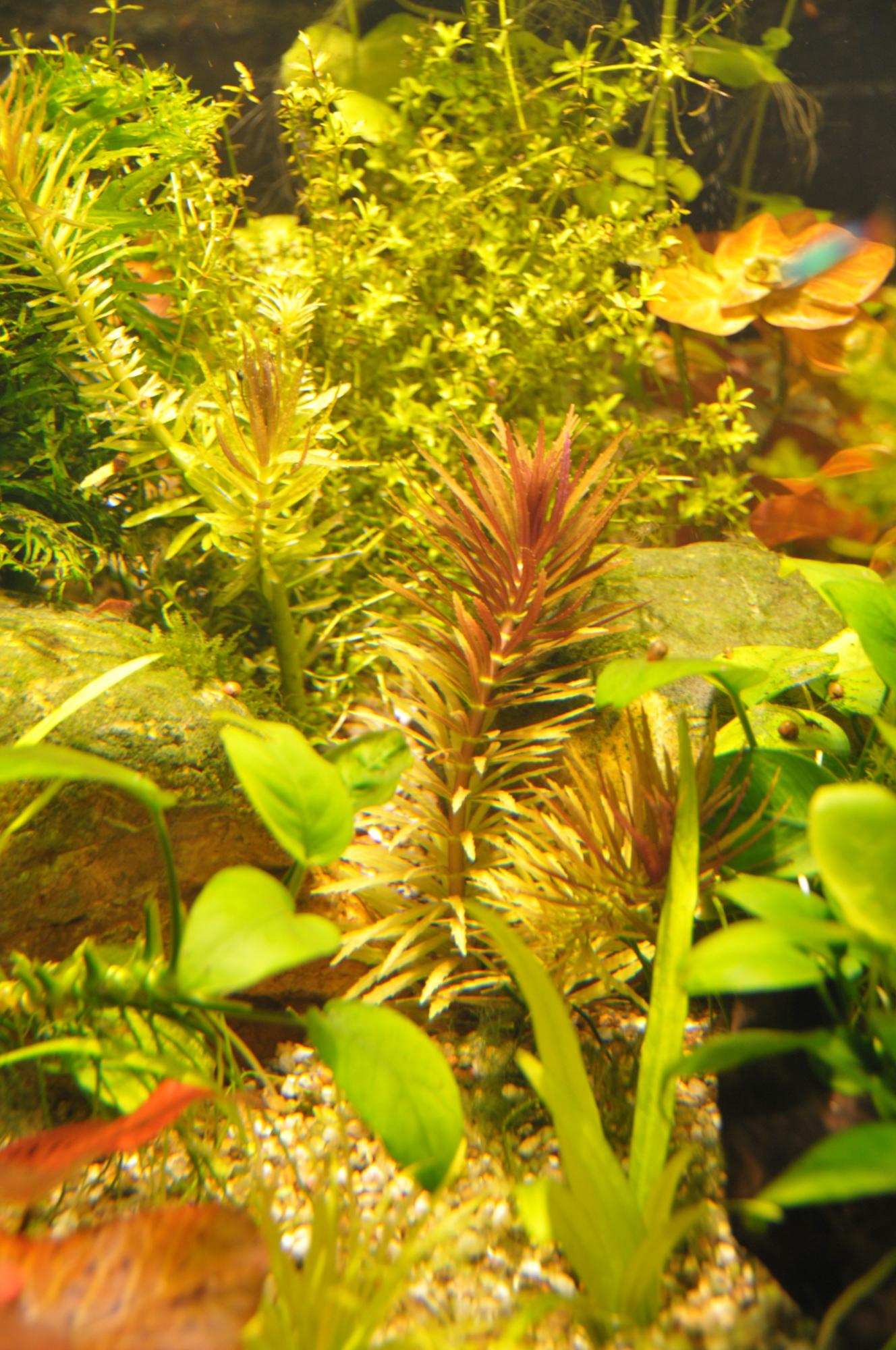 И мне помогите пожалуйста идентифицировать что за растительность в моём аквариуме.