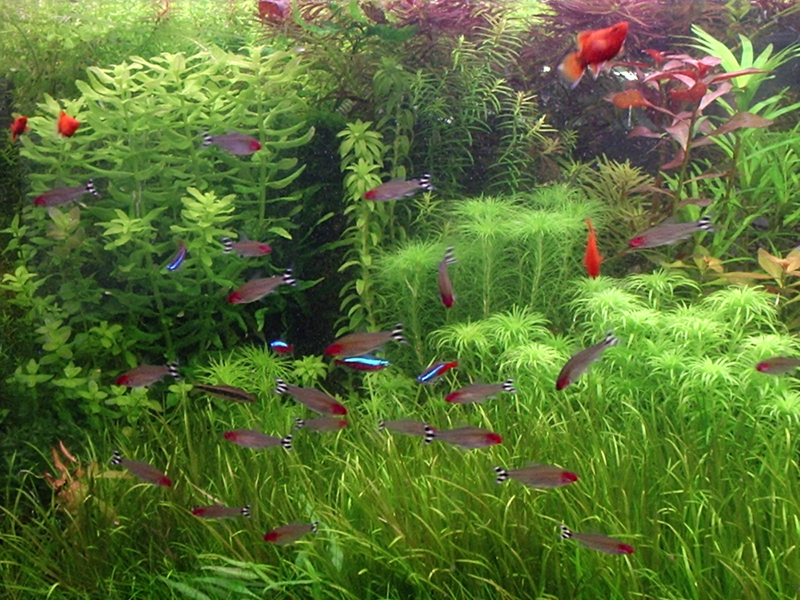 Также заметил периодический интерес родостомусов к мелкому хемиантусу ... но без катастрофических последствий для последнего. Щипан ут по паре листиков ... и домой - в ветки гигрофилы. На остальные растения даже не облизываются.