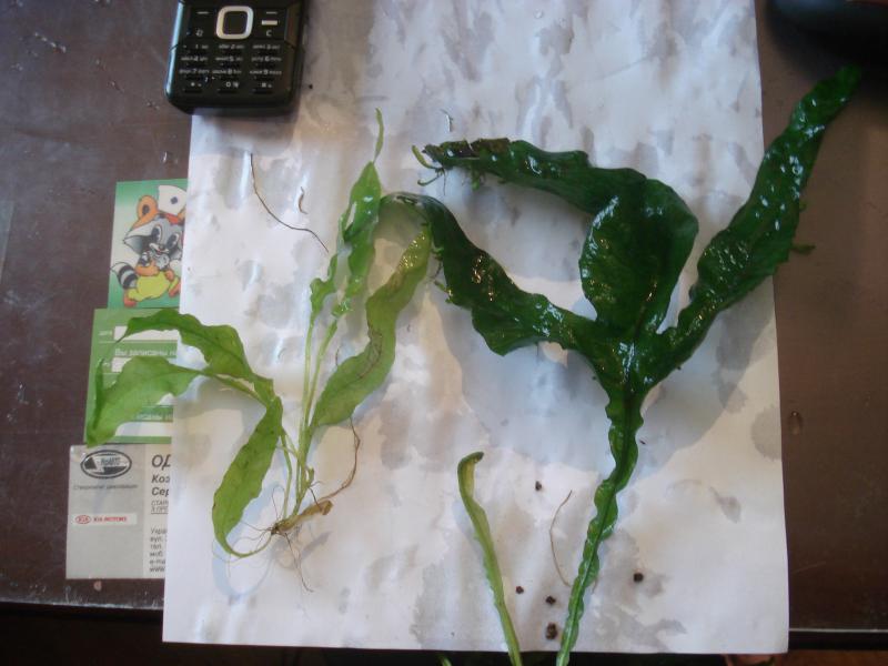 - Microsorum pteropus (короновидный)- на фото представлено молодое растение и рядом лист взрослогорастения