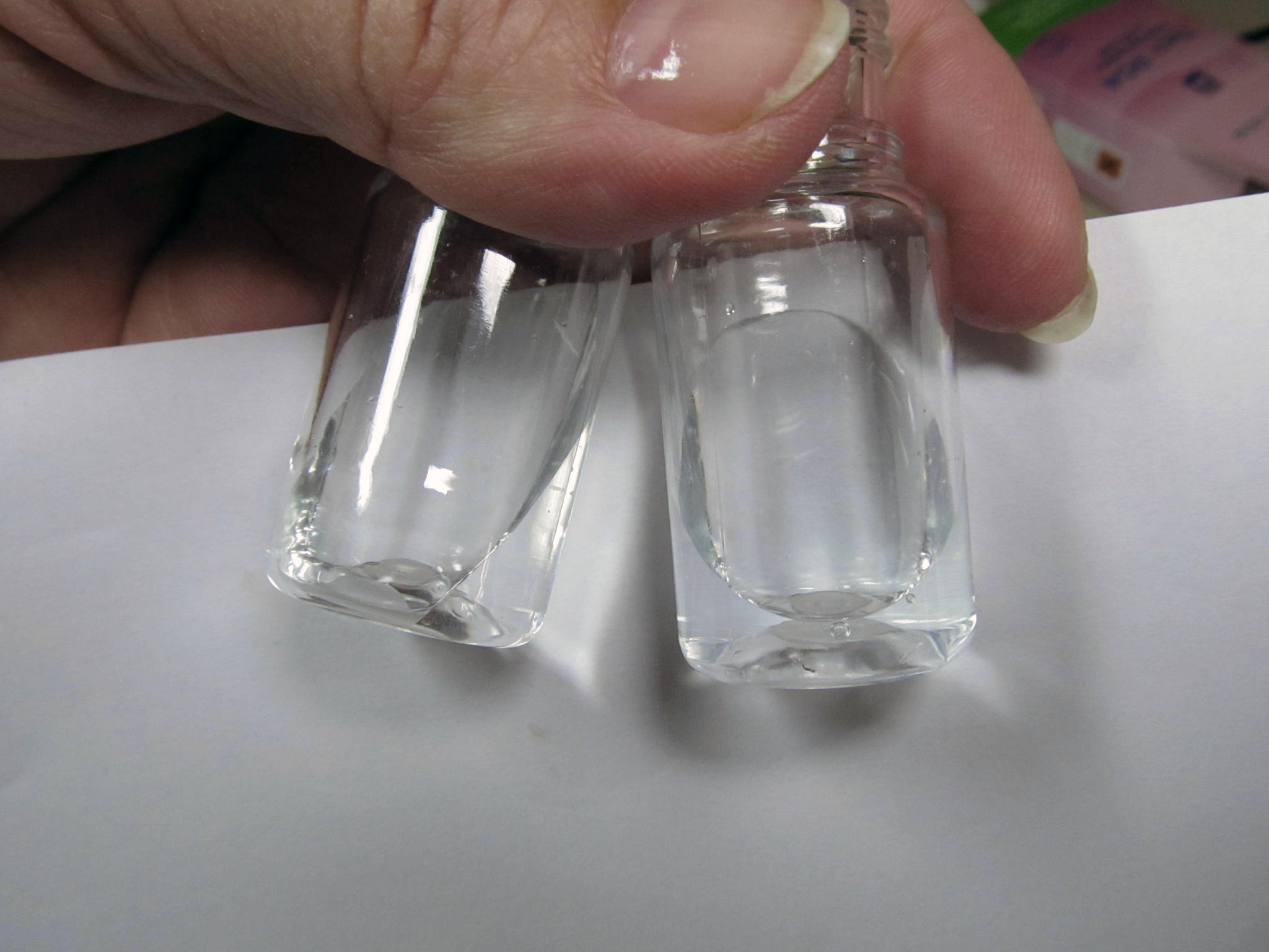 ИМХО определение цвета на просвет при переменной толщине слоя не является корректным. Более корректным было бы определение цвета при виде сверху. Например как в тестах НИЛПА. Но тоже не идеал, т.к. мениск слегка искажает цветность и яркость.