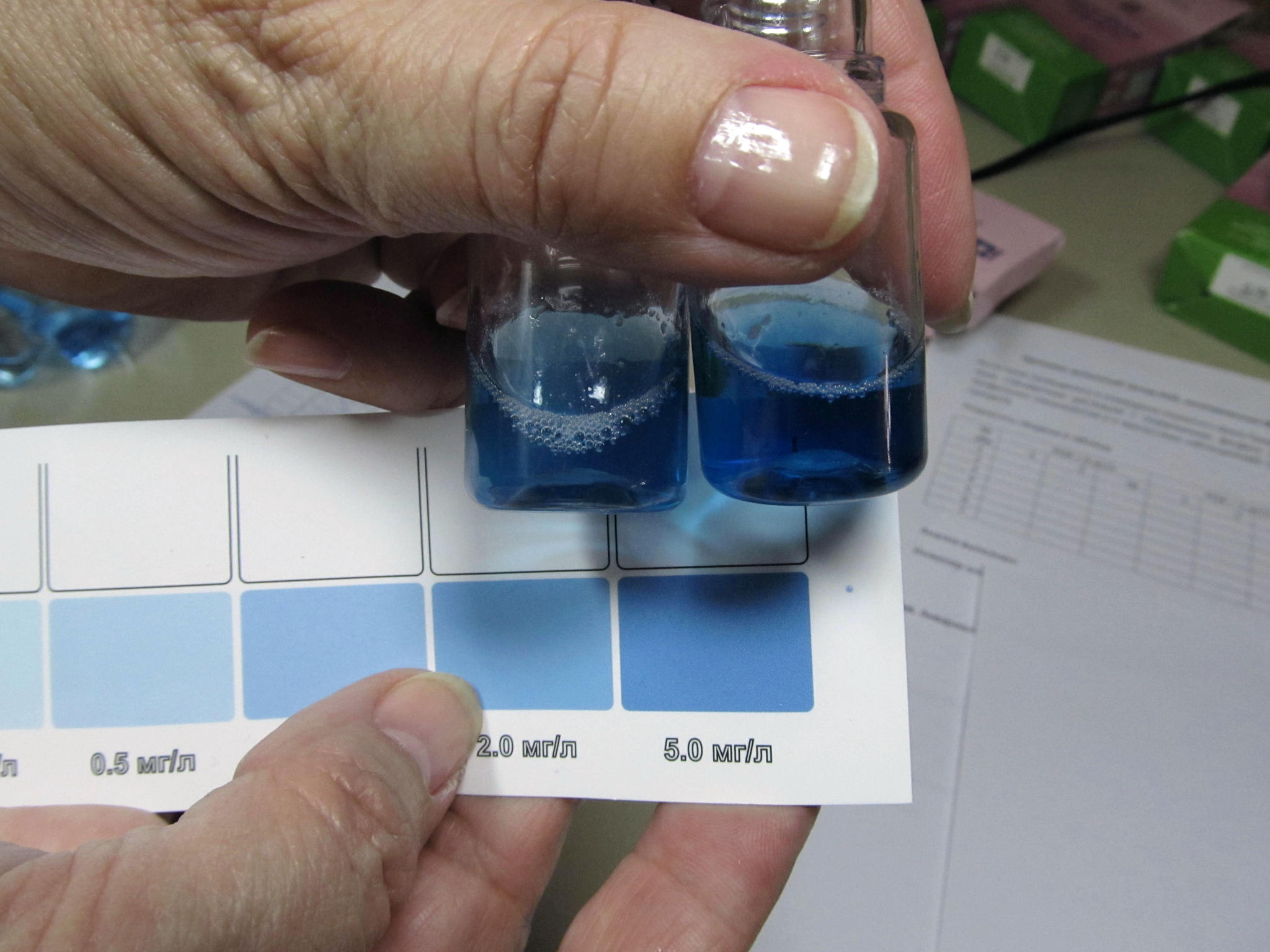 2. Небольшие отклонения цвета при оценке результатов обусловлены субъективной погрешностью лаборанта, что является неизбежным и допустимым фактором при такой методике проведения анализа и оценки результата.