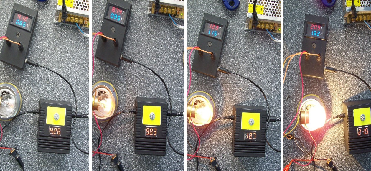 На фото видно, что при 21 Вольте питания ток составляет 1,5Ампера,