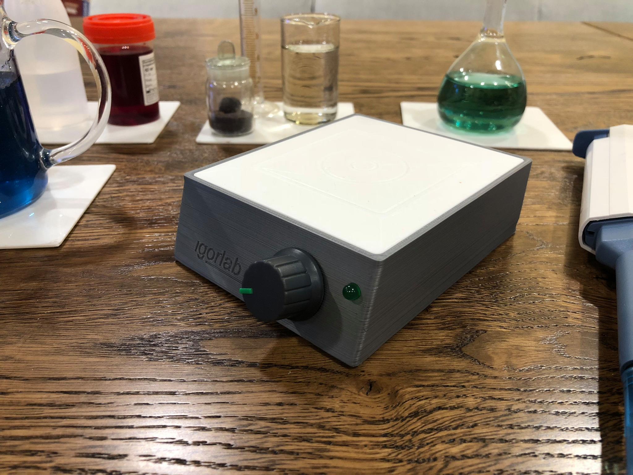 Мешалка, полностью спроектирована и создана с учетом моего многолетнего опыта работы в химической лаборатории. Размер мешалки и долговечный неодымовый магнит на роторе подобраны таким образом, чтобы можно было перемешивать жидкости как в самых маленьких бутылочках, которые идут в комплекте с тестами, так и емкости объемом до 1л. Удобный регулятор скорости вращения поможет подобрать оптимальную скорость - чтобы на повернохности образовалась воронка не доходящая до дна, это позволит избежать разбрызгивания раствора на стенки емкости, что может исказить результаты анализа. https://youtu.be/UpELtEpZEVE