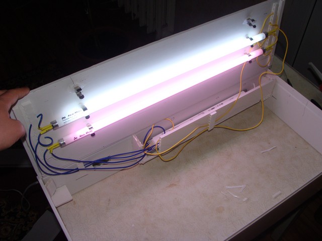 Теперь по эпра. Обязательно закрой его от воды. В таких условиях он и пару дней не протянет!!! Ночью, когда света нет, влага попадет в корпус эпра и утром, с подачей электрики может быть беда. Эпра вынеси наружу, на внешнюю заднюю стенку крышки. Ок?