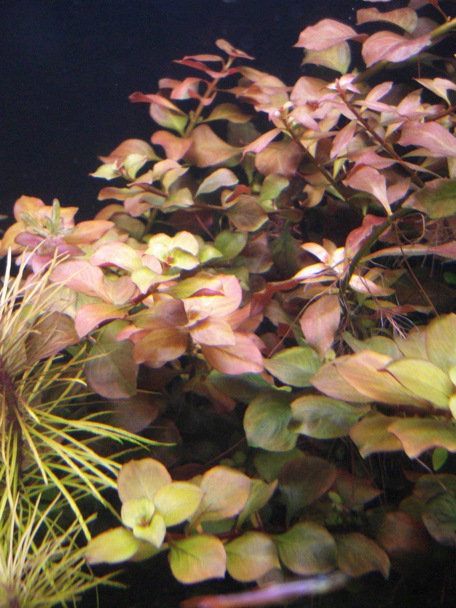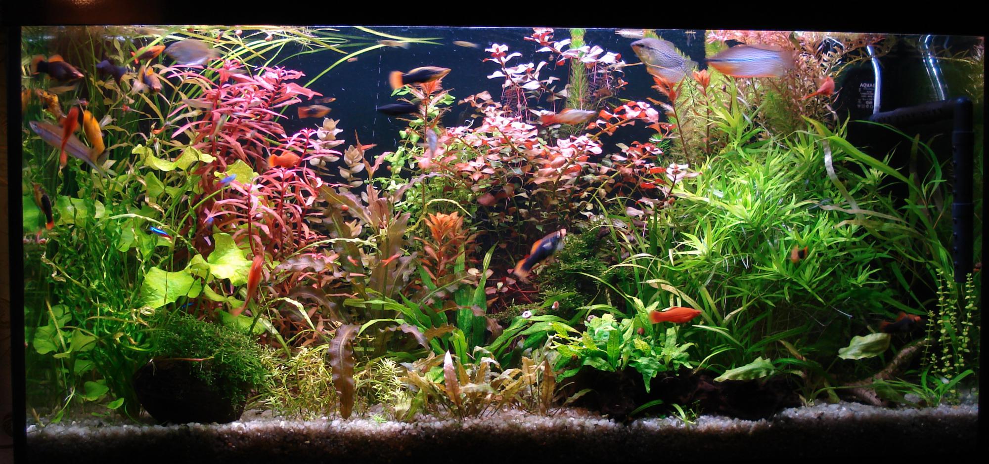 Растения выращены в этом аквариуме: свет 0,65 Вт/л, вода водопроводная (kH 9-10), грунт окатанный хаген, брага, удобрения микроэлементы 1 раз в неделю.