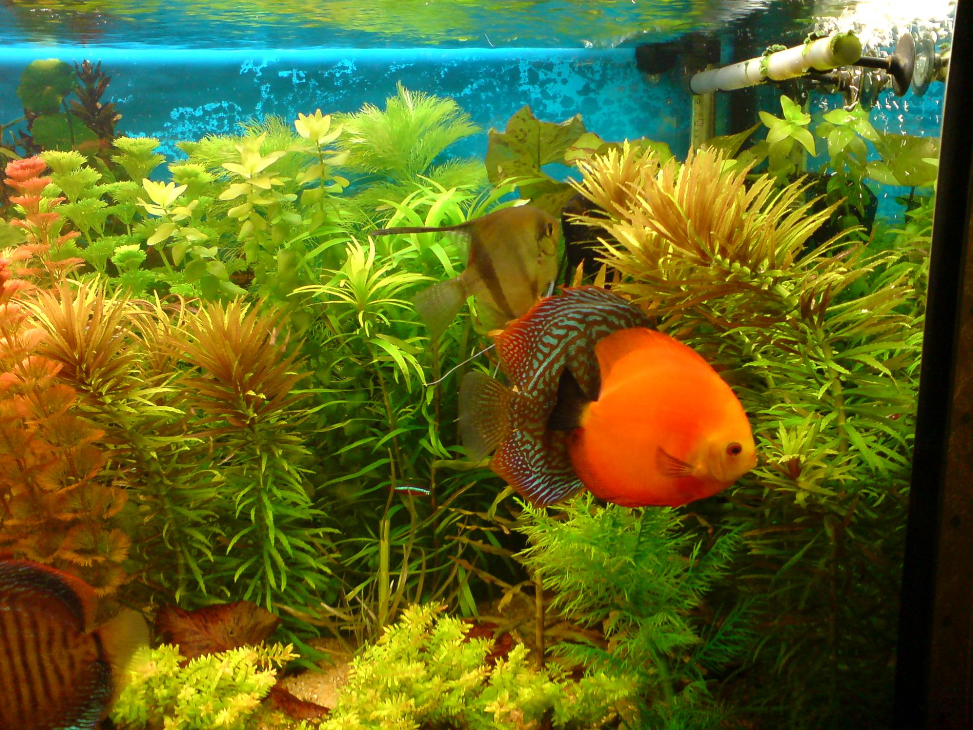 Спасибо. я вот и создавал эти темы не для того что б похвастатся какой у меня аквариум, а для того что бы показать особенно новичкам что без этой всей дорогой техники и прибамбпсов типа СО2 и удо и дорогие ламп можно создать не плохой аквариум с кучой растений и рыб притом не очень простых в содержании. дискус не самая простая рыба в содержании так же роталы валиха ротала, макранда красная, барклайя периана, кабомба красная и т. д. конечно если у кого куча денег и ему позволяет поставить нормальную систему с балоном СО2 (браги я не признаю) то тоже не плохо. но не все это себе могут позволить особенно дети и подростки