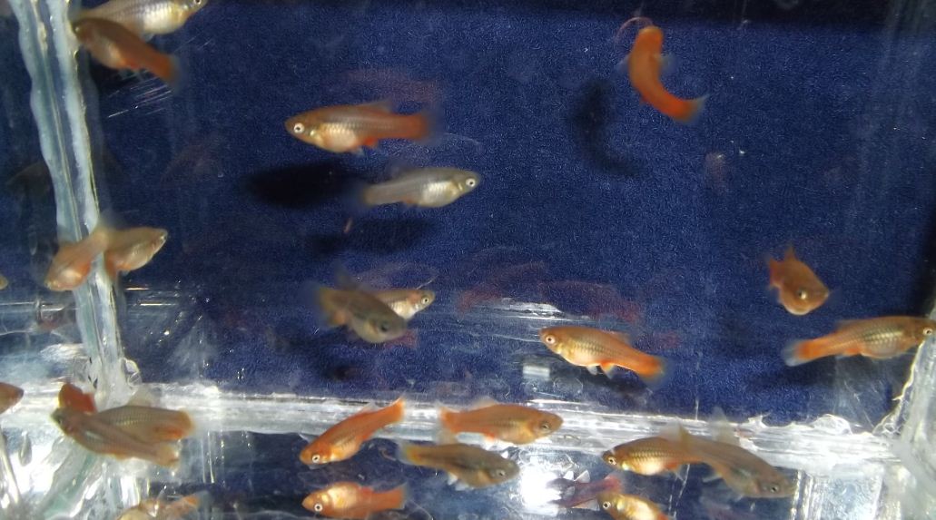 На фото 1,2 - взрослые 6-ти месячные , еще полностью не окрашены. На фото 3,4 - 2,5 недельный малек. На фото 5,6 тот-же малек но 3,5 месяца.