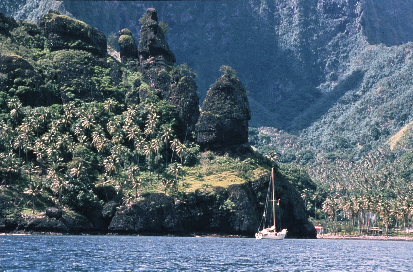 "Казалось, остров постепенно всплывает над водой. Величественный, устремленный ввысь, вонзающий в небо острые пики... Голубые разломы, тонкие шпили, а под ними весенняя зелень холмов и пригорков. Еще ниже к берегу сползал темно-зеленый лес, разбегаясь пальмовыми рощицами, которые придавали острову неповторимый облик."(с) Тур Хейердал.