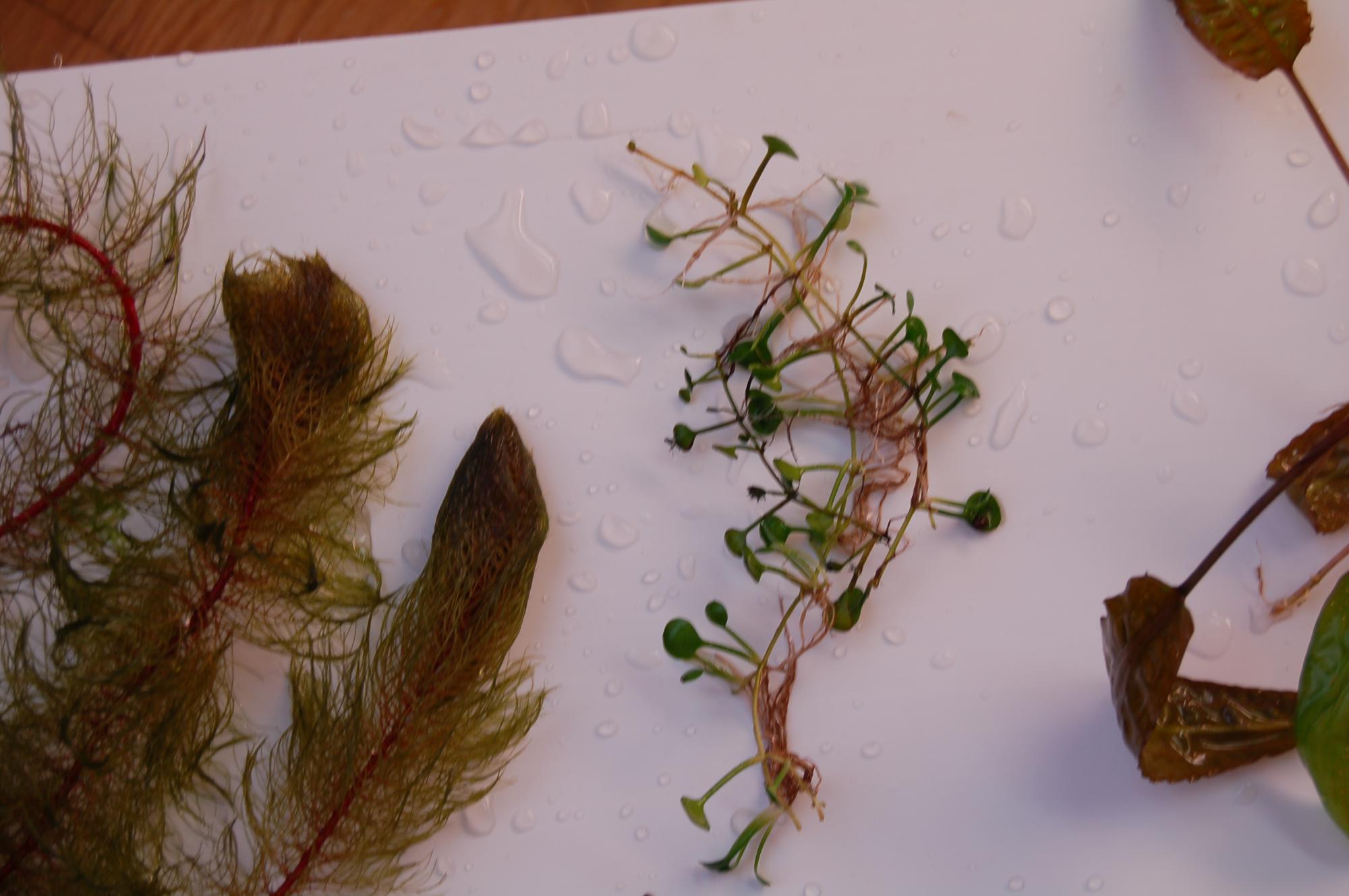 3 ветки перистолистника, 5 веток людвигии-рубин, 3 ветки бакопы каролинской, марсилии пучок, химеантус, а так же аппоногетон живородящий и еще кучу всего набросаю :-).