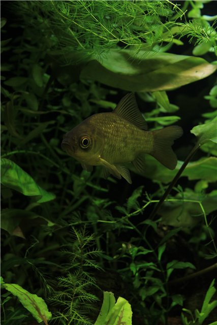 Аквариум жив. Карась вырос, стал ручной совершенно. Попугайчики счастливые ( Немо самый лучший папа), уже два поколения поднял. Но самая большая проблема: ни один мох не приживается, карась его воспринимает как корм.