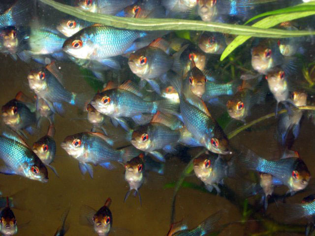 например, неоны, кардиналы, пылающие тетры; мелкие данио, барбусы, представители рода
