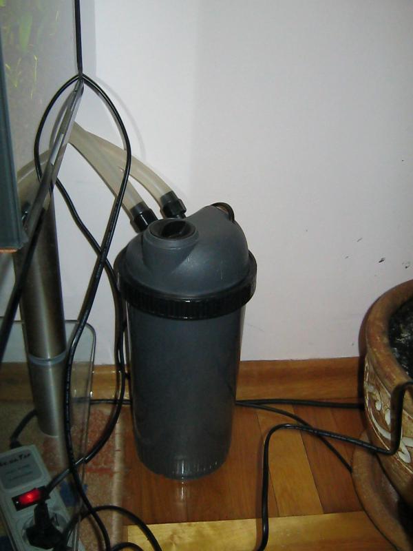 Установил маленький внешник "Акваель" (таких уже не выпускают), работает отлично, на водозаборник установил пре фильтр, в виде губки от внутреннего фильтра.