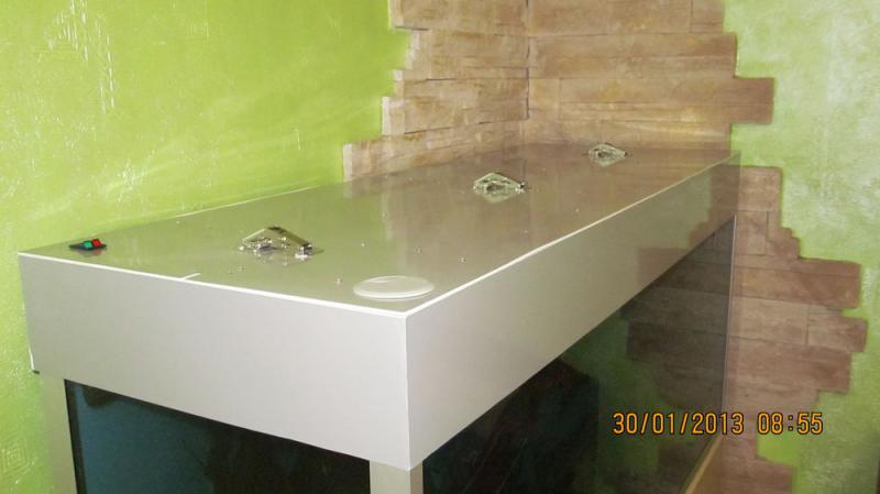 Литраж такой-же как у Вас. Клеить уже научился, но только проблема в запахе в квартире и детях, которые постоянно норовят пальчиком залезть в силикон. Оно ведь так классно потрогать и вытереть чёрным о что-либо. Крышку тоже сам делал. Ещё надо в ней окантовку из уголка алюминиего сделать. Отражатели из водосточной трубы за 64 грн, обклееные оракалом и подогнутые феном строительным для придания формы параболы. Кстати есть остаток 1,5 м.п. этой трубы. Валяется. Из ламп: