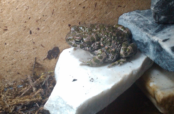 Произошёл печальный случай: вынутая для кормёжки из террариума зелёная жаба совершила внезапный прыжок, завершившийся в кружке только что налитого горячего (минуту назад кипевшего) чая. Жаба была тут же вынута и помещена на некоторое время под поток прохладно воды. После вернул в террариум. Обварены передние лапы и морда. Глаза, кажется, не пострадали. А вот передние лапы - довольно сильно. Плальцы скрючены и не двигаются, жаба не может толком использовать передние лапы. Кожа местами заметно побледнела, кое-где уже отходит пластами. Звуков жаба никаких не издаёт, только тяжело дышит и ковылет по террариуму, пытаясь куда-нибудь выбраться.