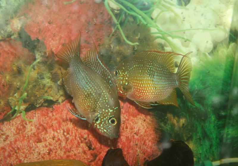 Американская цихлида. Прекрасные рыбки!!! неприхотливые, изумительный окрас, уживаются с любыми рыбками. Мальки: возраст 2,5 месяца (2-3 см.) и меньше. Элитные родители (аквариум 400л.). Икра и малёк на выход из нерестовика через метиленовый синий. Корм малька живая коловратка, живая артемия, живой гриндаль, TetraMin baby, спирулина. От месяцa мальки в 100 литровом, полностью автономном аквариуме с корягой, корм "TetraMin Junior", мотыль мороженый мелкий (фирмы "neonfishfood", кто знает СУПЕР ЧИСТЫЙ!!! рекомендую!), мороженая артемия, мороженый цихлид диет, живой энхитреус, спирулина.