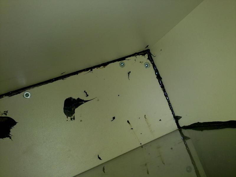 Следующим шагом был распил ДСП, но так как мне сказала хозяйка фирмы, что влагостойкого ДСП не существует, мне пришлось подумать о герметизации открытых краем. Для этого я использовал обычный герметик.