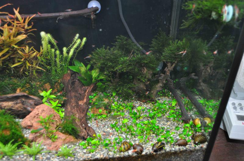 Аквариум перезапущен в конце августа в связи с переездом. Пока имеем это.