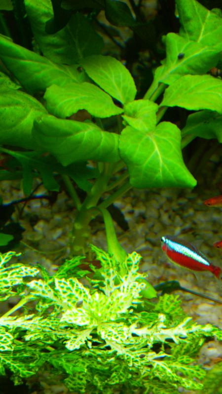 Эхинодорус Скабер(Шероховатый)на фото не очень получился,так как находится в гуще растений.На самом деле широкие и яркие листья на маленьком черенке выглядят очень шикарно.