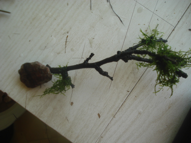 Начался процесс посадки растений....(вспомнился длинный пинцет---вот чего нехватпло реально) Растения садится не хотели или мешали палки или камни, а пальцами туда уже никак не подлезиш..... только очень мой маленький пинцет.....и то не всегда это удавалось....и вот пошли мои ноу хау( а может не мои, но я такого в нете не видел...)Начал привязывать в палочкам камешки, к растениям(как при СССР) свинец, плюс досыпка в определенные места кварца разными трубочками, водяными уровнями(применяется в строительстве) А мотание мхов на мини палочки--это ваще убийство.....Но вроде начало вырисовываться что хотел( или подобие того)