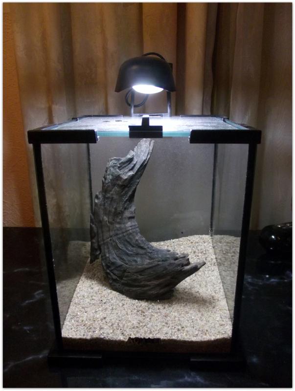 Коряга для устойчивости установлена на 3 кусках от велосипедной спицы, на ножки спиц одеты кембрики во избежание лишней нагрузки на дно (спасибо Маркесу – это он здорово придумал).