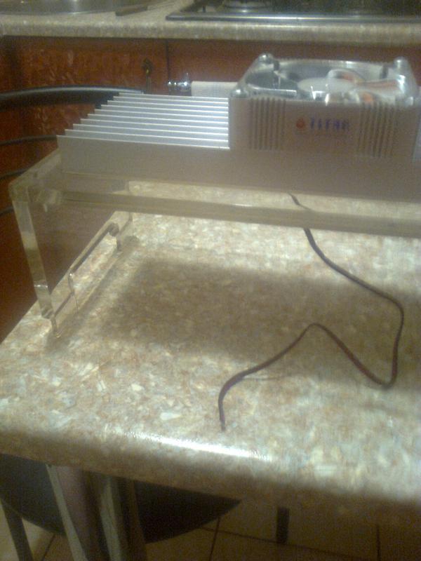 - Светильник моя разработка.Температура света 7500.БП-340Вт,12V -2 выхода.Темп радиатора 35-40град.