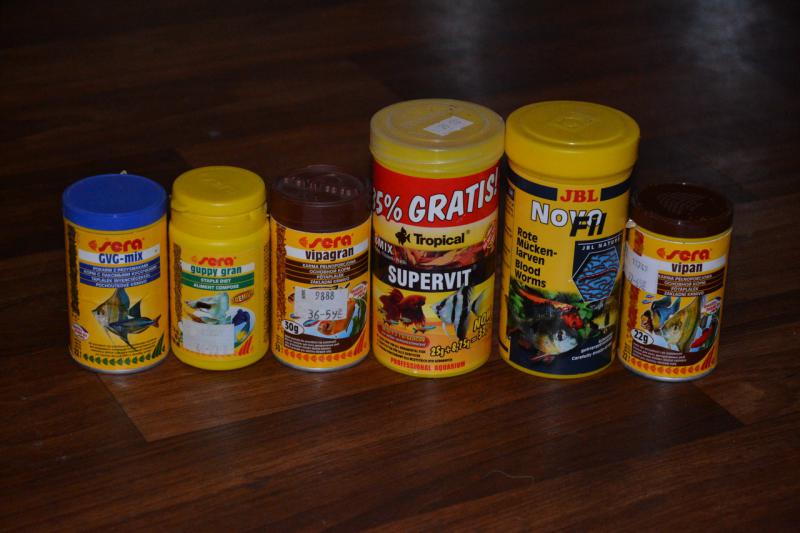 На фото то, что ели рыбы последние полгода, кроме мороженых червей. Раз в неделю добавлял одну таблетку SERA Spirulina Tabs. Последний месяц червей не давал.