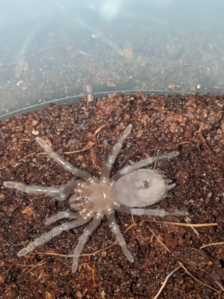 Молодая самка Pterinopelma sazimai л7, только начинает проявляться синева.