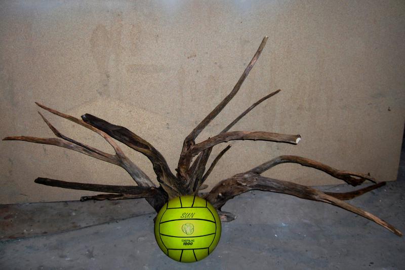 Сфотографировал мяч на фоне коряги,чтобы можно было визуально "ощутить" размер данной композиции
